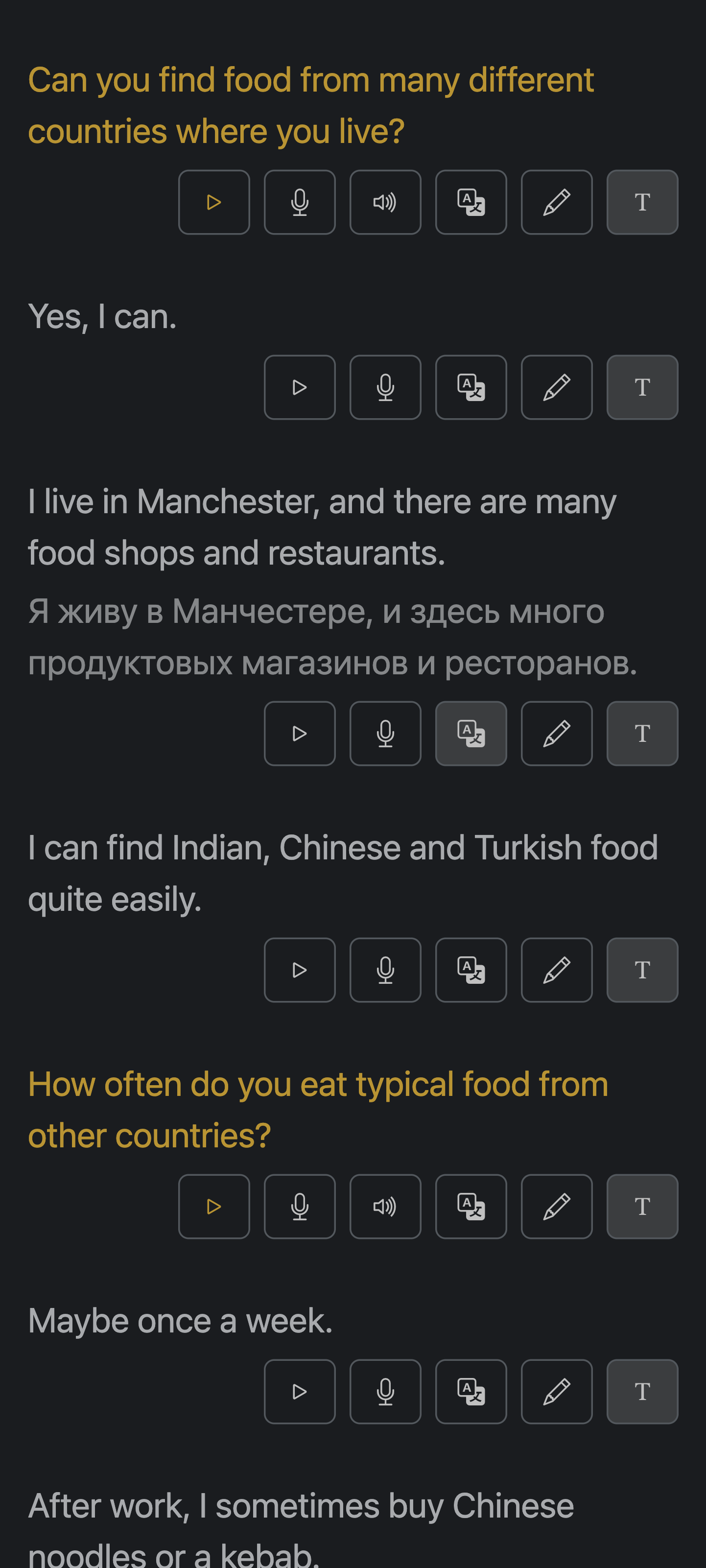 Tap the translation control on any phrase—stay in the zone with instant meaning, no tab-hopping or guesswork.